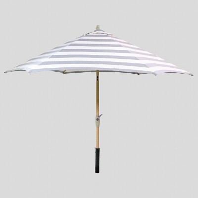 9 Round Cabana Stripe Patio Umbrella Black Pole Threshold Target